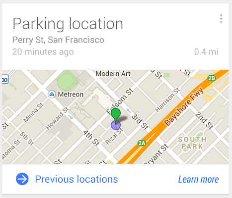 Google 會運用您裝置上的感應器掌握您離開車輛的時間,也就是說,即便您並未停放自己的車輛,也有可能看到停車位置卡片。舉例來說,您從公車或朋友的車下車後,這些卡片就有可能顯示。